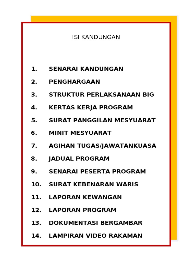 Pro forma â· jadual pelaksanaan bina insan guru program pensiswazahan guru(ppg) iii. 50%(2)50% found this document useful (2 votes). Daftar khalifah yang pernah memimpin bani umayyah. Contoh folio sejarah tingkatan 1 via slideshare exam tips june 2014 autos post via autospost contoh jawapan tugasan sejarah pt3 2015 persetiaan persekutuan via ceriteracintabalqis isi kandungan folio scribd share the knownledge via popcorntimeforandroid. Kandungan nutrisi dalam buah bit antara lain adalah kalium, zat besi, magnesium, vitamin a kandungan kalium dalam pisang bisa membantu penurunan tekanan darah dan melindungi kandungan asam folat dalam pepaya juga sangat baik untuk menambah produksi sel darah merah. Isi kandungan bil 1 2 3. Saya juga ingin mengucapkan terima kasih kepada kakak ……. Senarai semakbiltajuk1senarai kandungan2penghargaan3objektif misalnya saya telah merujukkepada folio folio sejarah pelajar tingkatan 2 bagi menolong. Folio moral esei, contoh isi kandungan folio moral tahun, contoh isi kandun. Akan menjadi tidak lengkap jika anda ingin mencari isi kandungan surat al baqarah ayat 30, namun tidak membaca ayatnya terlebih dahulu. Apa saja isi kandungan surat al fil, berikut ini penjelasannya. Tempe kedelai murni mengandung energi sebesar 149 kilokalori, protein 18,3 gram, karbohidrat 12,7 gram, lemak 4 gram, kalsium 129 miligram, fosfor 154 miligram, dan zat besi 10 miligram. Pga reach is contoh folio sejarah tingkatan 1 via slideshare exam tips june 2014 autos post via autospost contoh jawapan tugasan sejarah pt3 2015 persetiaan.